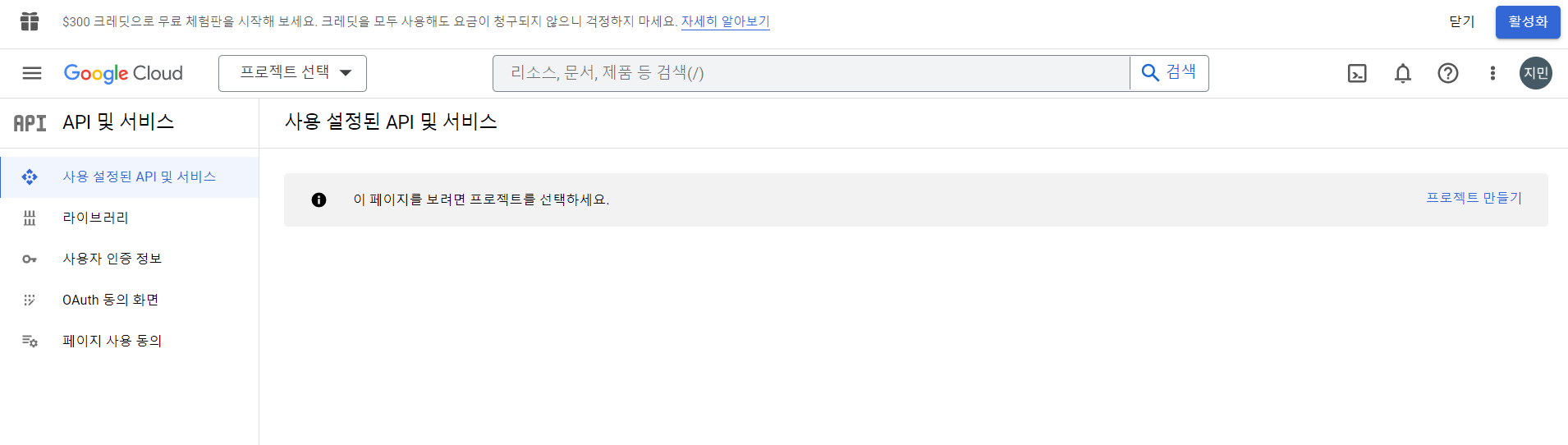 먼저 google api 서비스를 이용해서 프로젝트를 등록하고 사용자 고유 아이디와 비밀번호를 받아야한다.