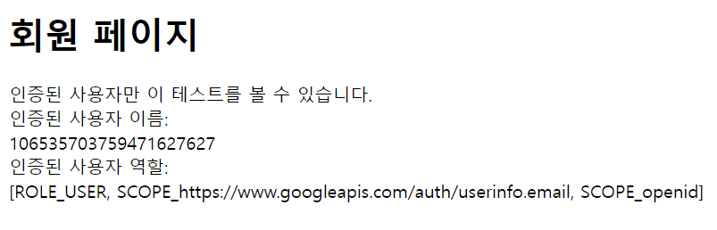 - 받아오는 값 userRequest 에 들어 있는 속성 값은 구글 프로젝트 생성시 설정한 'API 설정 범위' 와 연관이 있다.