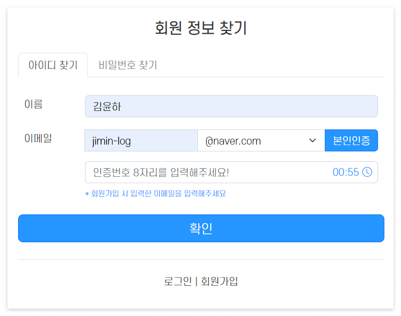 사이트의 회원 아이디 찾기에서 이메일 인증을 사용하는 로직을 만들어보았다.