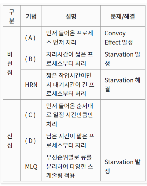 16. 다음은 스케줄링에 관한 내용이다. 괄호안에 알맞는 답을 작성하시오.