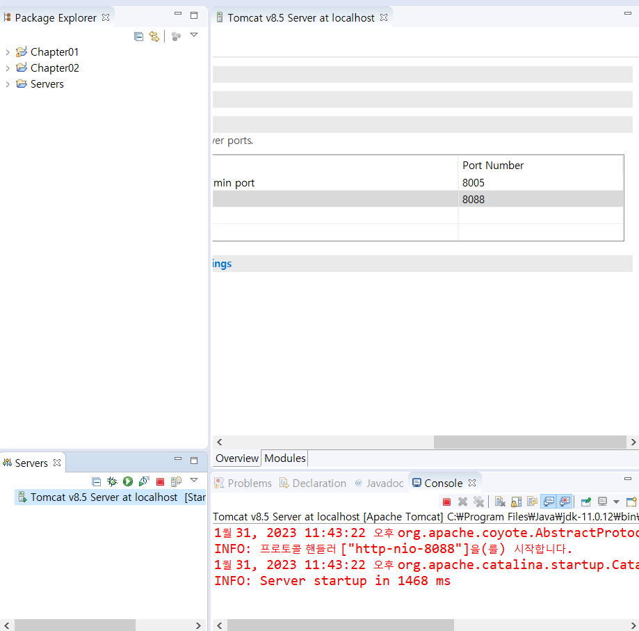 6) 생성된 톰켓을 열어 포트번호 8088로 변경 후 저장