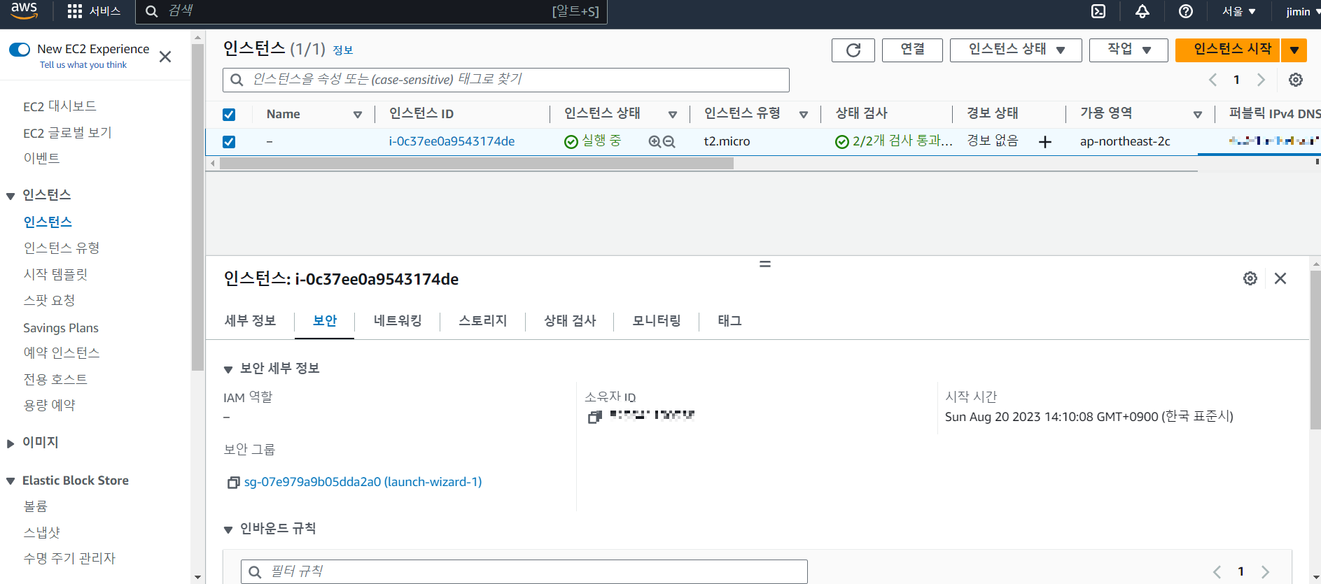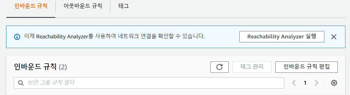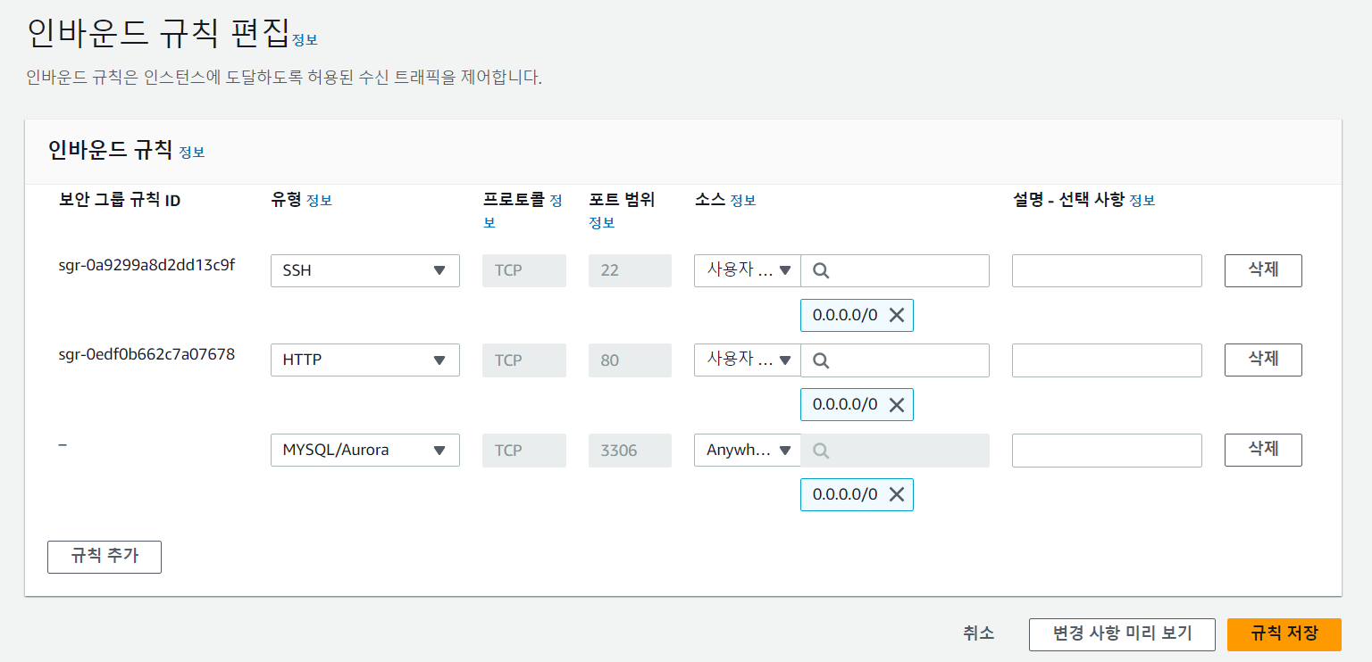 - AWS 보안 > 인바운드 규칙 > 보안그룹