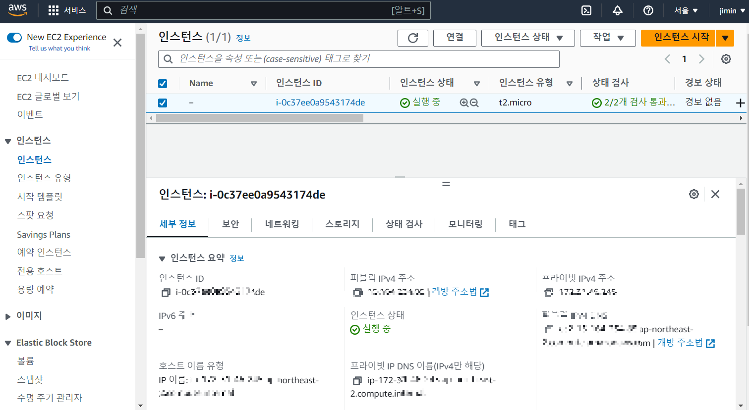 기존 퍼블릭 IP는 변동되는 아이피로 탄력적(고정) IP로 설정해준다.