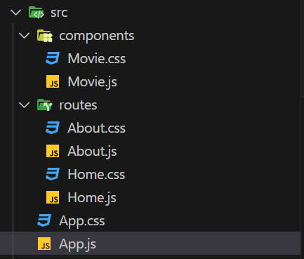 components: 기능 별 컴포넌트routes: 라우터가 보여줄 화면 컴포넌트