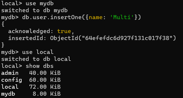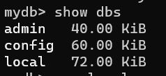 show dbs를 해도 나오지 않는다. - 데이터를 가지고 있어야함.