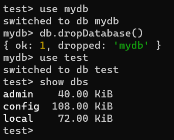testdb1> db.mongotest.findOne({age:10}) - 나이가 11 이상인 조건 :
