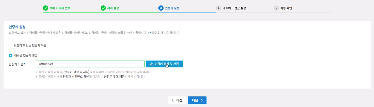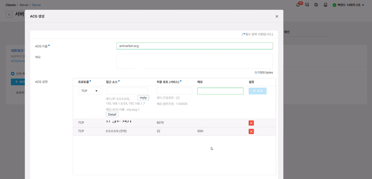 [ 인증키 생성 -> ACG 생성 및 설정 -> 서버 생성 ]