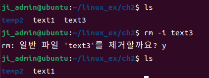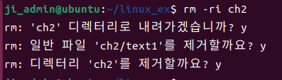 | 옵션 | -i : 파일을 정말 삭제할 것인지 물어본다. -r : 디렉터리를 삭제 |