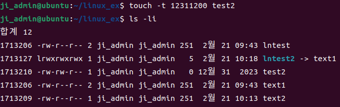 1) ln (원본파일) (새 하드링크) ![]() 2) -t 옵션 사용하여 변경할 시간 지정 ![]() |