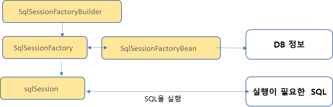 * SqlSession : 쿼리 매핑 구문을 실행하기 위해 사용된다. sqlSessionFactory로부터 생성됨.
