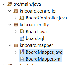 - <mapper namespace= "kr.board.mapper.BoardMapper"> 연결되는 java 객체를 넣어준다.
