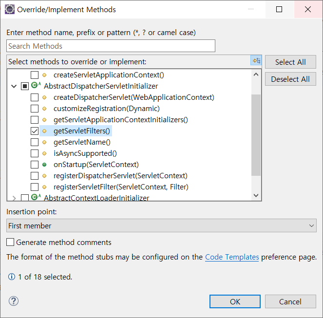 2) web.xml을 대체하는 AbstractAnnotationConfigDispatcherServletInitializer 클래스를 상속 받은 자바파일 생성